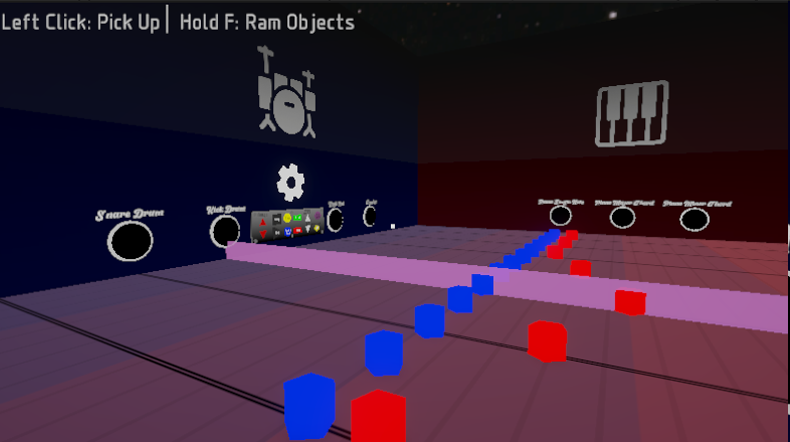 Go to the toyboxes along the walls and pull new instrument samples out, and be sure to check out some of the advanced controls on the settings wall. You can move the notes "horizontally" along the scrubber's timeline to place them temporally, and move them from red to blue to change their pitch. Stack 'em, throw 'em, make beautiful music...it's up to you!